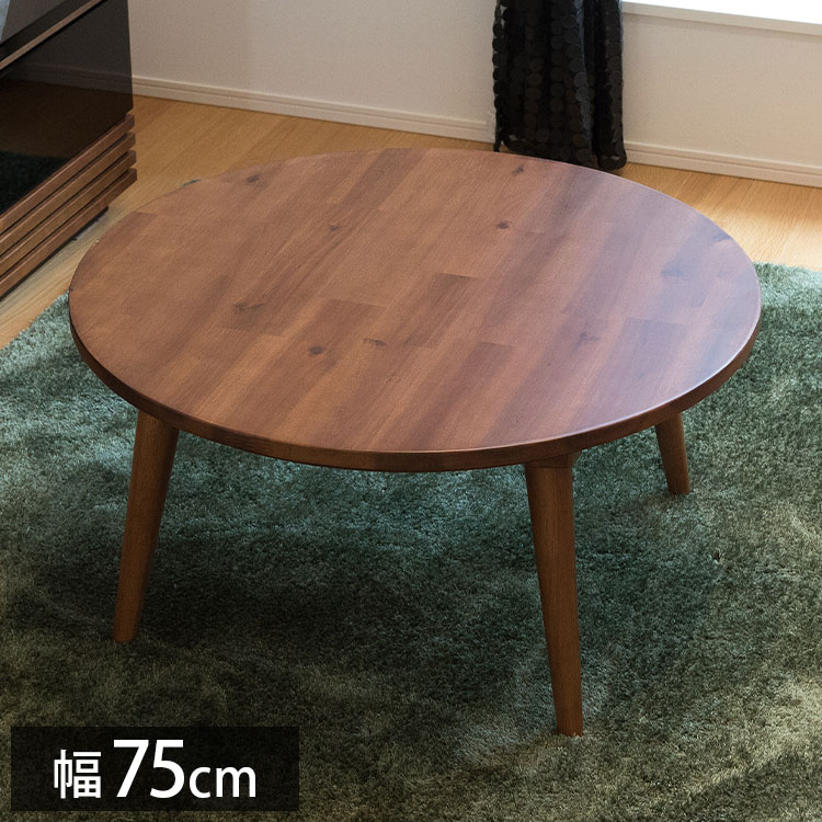 こたつ 幅75cm 円形 丸型 炬燵 天然木 センターテーブル モダン ヴィンテージ アカシア 無垢 ブラウン 代引不可 レビュー&報告で炬燵入浴剤プレゼント