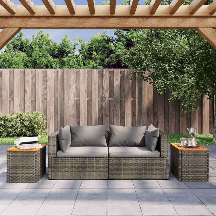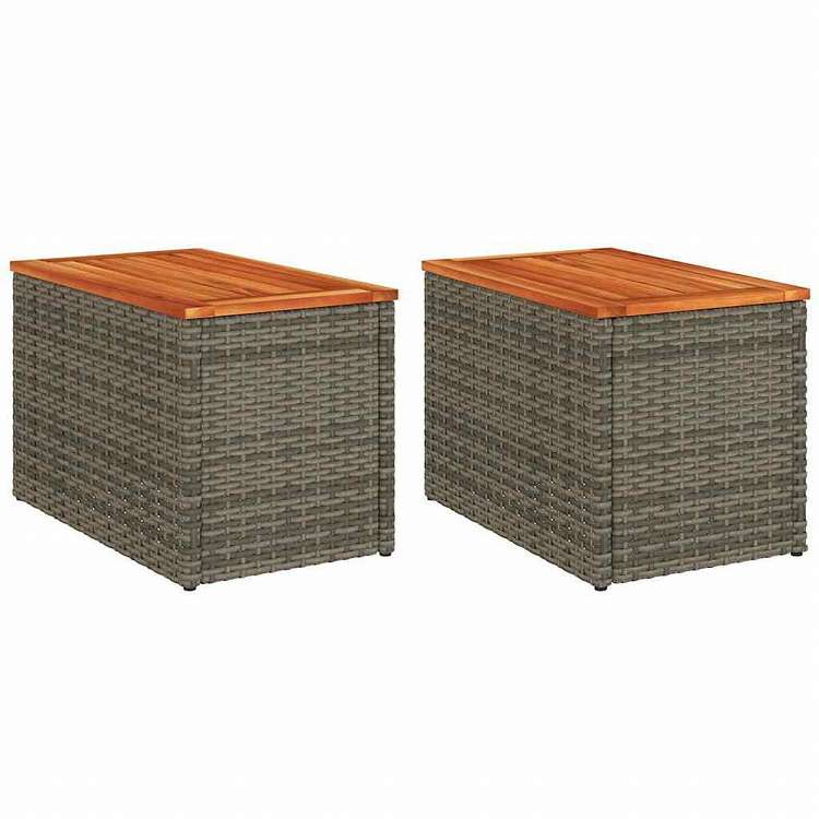 vidaXL ガーデンサイドテーブル 2点 グレー 55x34x37cm ポリラタン 無垢材家具 アウトドア家具 アウトドアテーブル 代引不可
