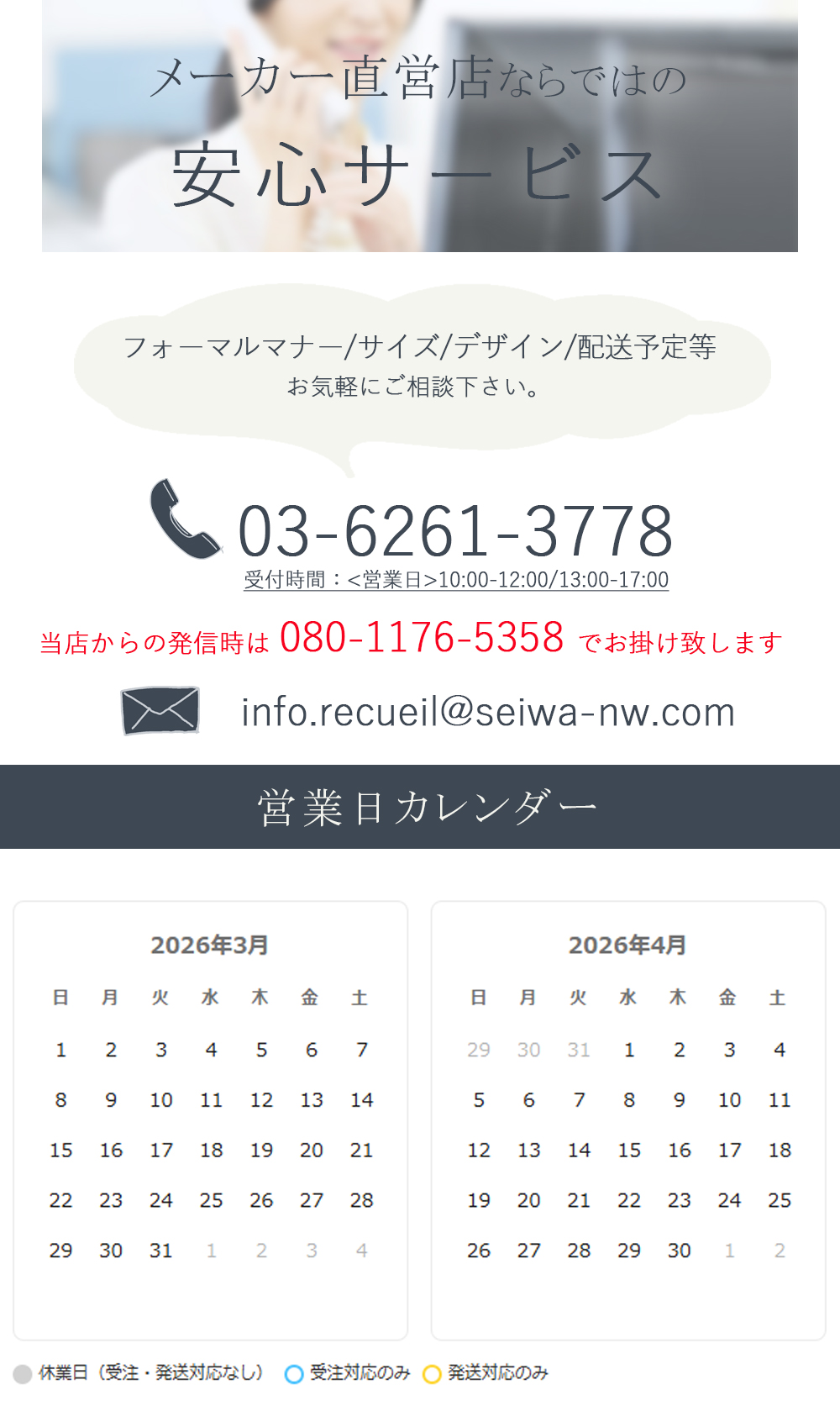 営業日 の10:00-12:00/13:00-17:00