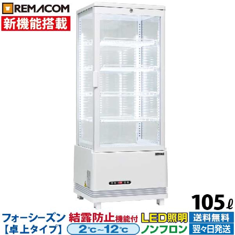 新品 冷蔵ショーケース 4面ガラス フォーシーズンシリーズ R4G-105SLW (ホワイト) 105L 卓上型タイプ 自然冷媒 ノンフロン レマコム