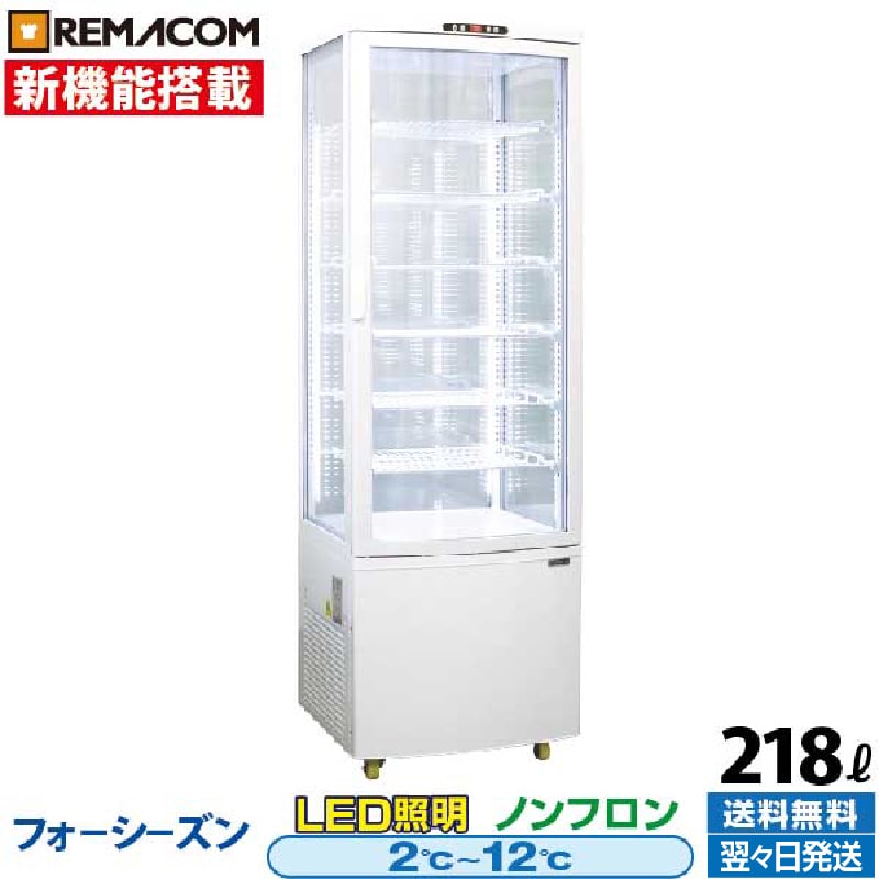 新品 冷蔵ショーケース 4面ガラス フォーシーズンシリーズ R4G-218SLW (ホワイト) 218L 自然冷媒 ノンフロン レマコム