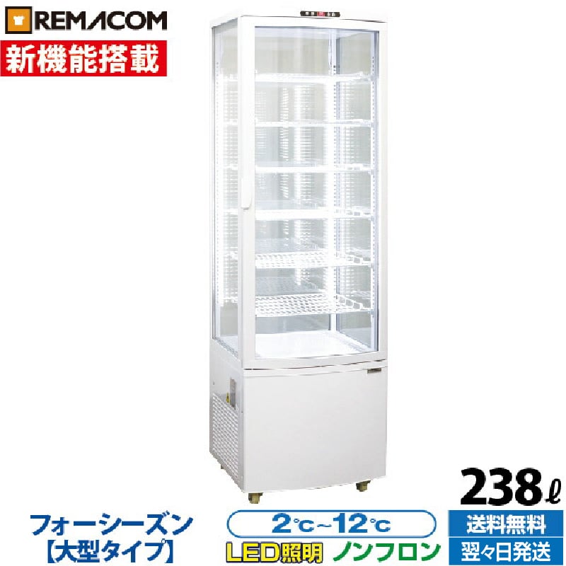 新品 冷蔵ショーケース 4面ガラス フォーシーズンシリーズ R4G-238SLW (ホワイト) 238L 大型タイプ 自然冷媒 ノンフロン レマコム