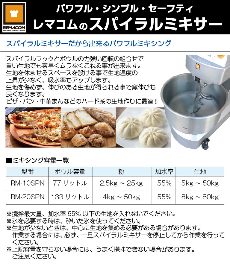新品 スパイラルミキサー 133L RM-20SPN 送料無料 レマコム