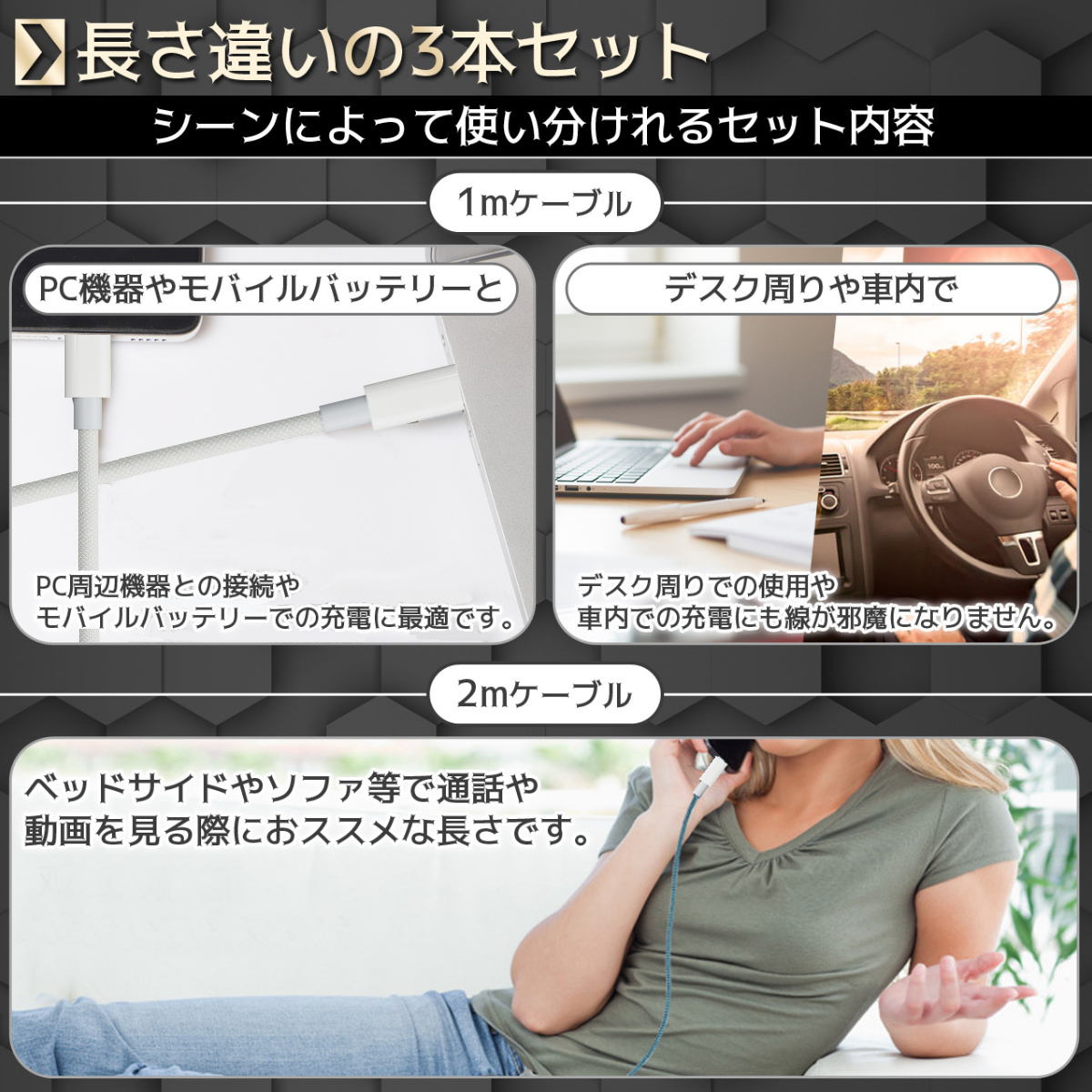 iPhone 充電ケーブル ライトニング lightning 充電器 スマホ 充電器 アイホン iPad コード 携帯 USB 急速充電 3本セット