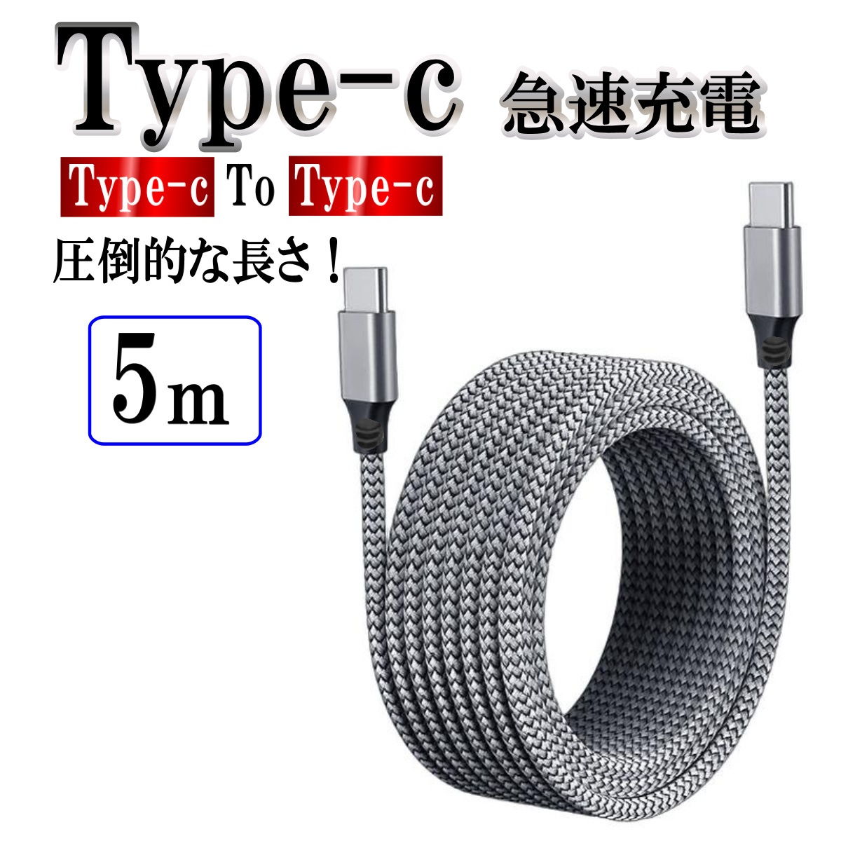iphone16 対応 Type-c Typec PD 5m 充電ケーブル タイプc 充電 USBケーブル 60w 急速充電 携帯 スマホ コード