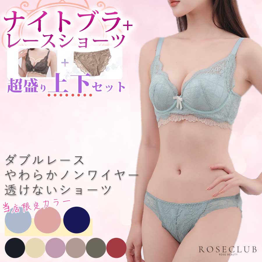 ブラジャー ショーツセット ナイトブラ ノンワイヤー セット 透けない 上下 脇高 盛りブラ 補正 ブラジャー3/4カップ バストアップ 育乳ブラ レース かわいい