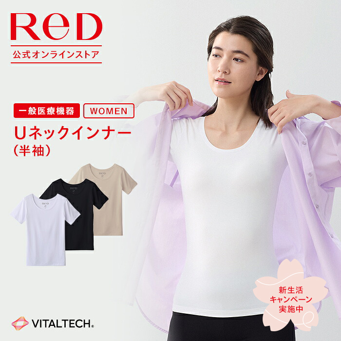 期間限定P5%●リカバリーウエア ReD レッド公式 Uネック インナー 半袖 リカバリーウエア レディース 疲労回復 インナー ギフト 一般医療機器 女性 爆買