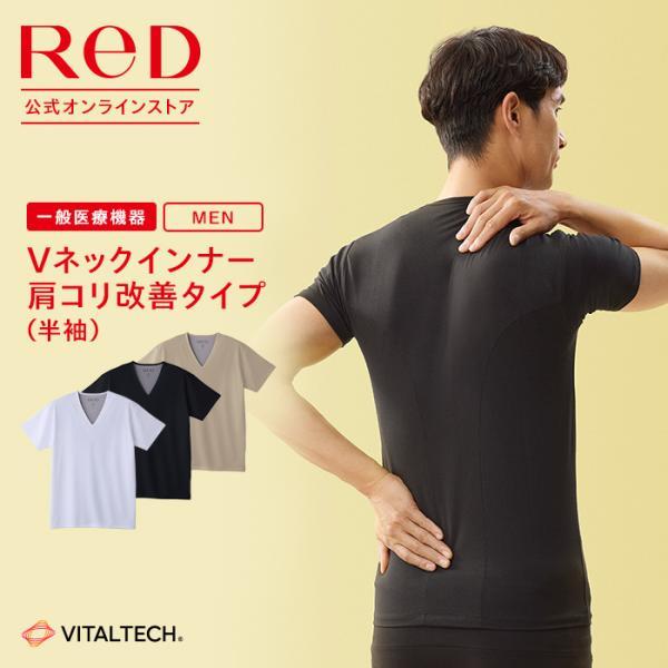 リカバリーウェア ReD レッド公式 Vネック インナー 半袖 肩コリ改善 疲労回復 インナーウェア健康 プレゼント ヘルスケア 一般医療機器 メンズ 男性 爆買