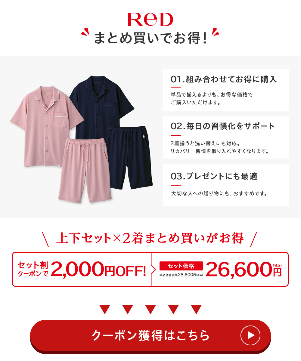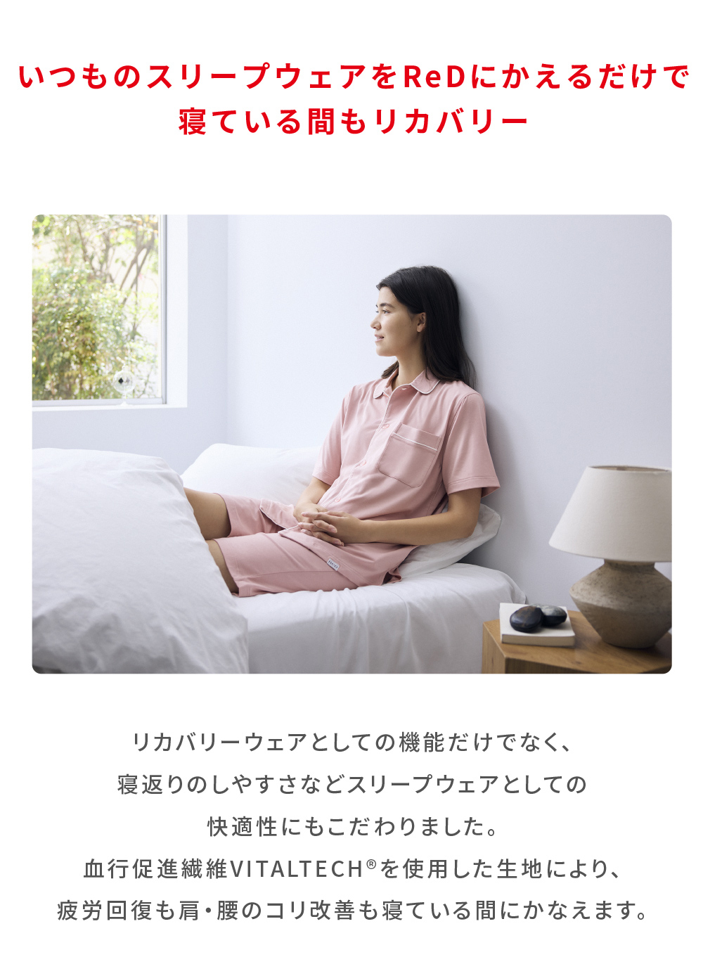 期間限定P5%●リカバリーウェア ReD レッド公式 パジャマ トップス 半袖 上下セット 疲労回復 ルームウェア ユニセックス 男女兼用プレゼント ギフト