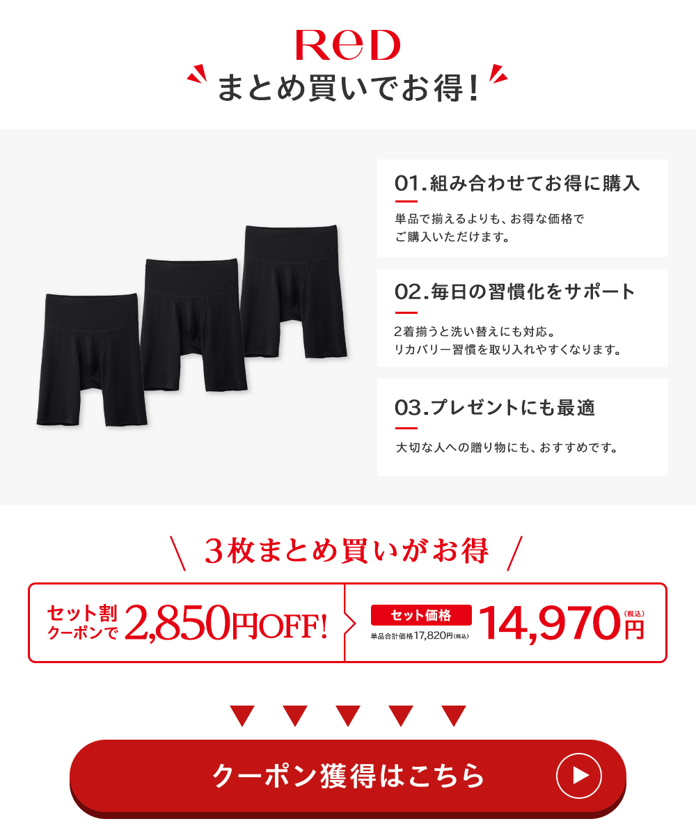 リカバリーウェア ReD レッド公式 ロングボクサーパンツ 腰のコリ改善 疲労回復 下着 インナーウェア プレゼント ヘルスケア 一般医療機器 メンズ 男性 爆買