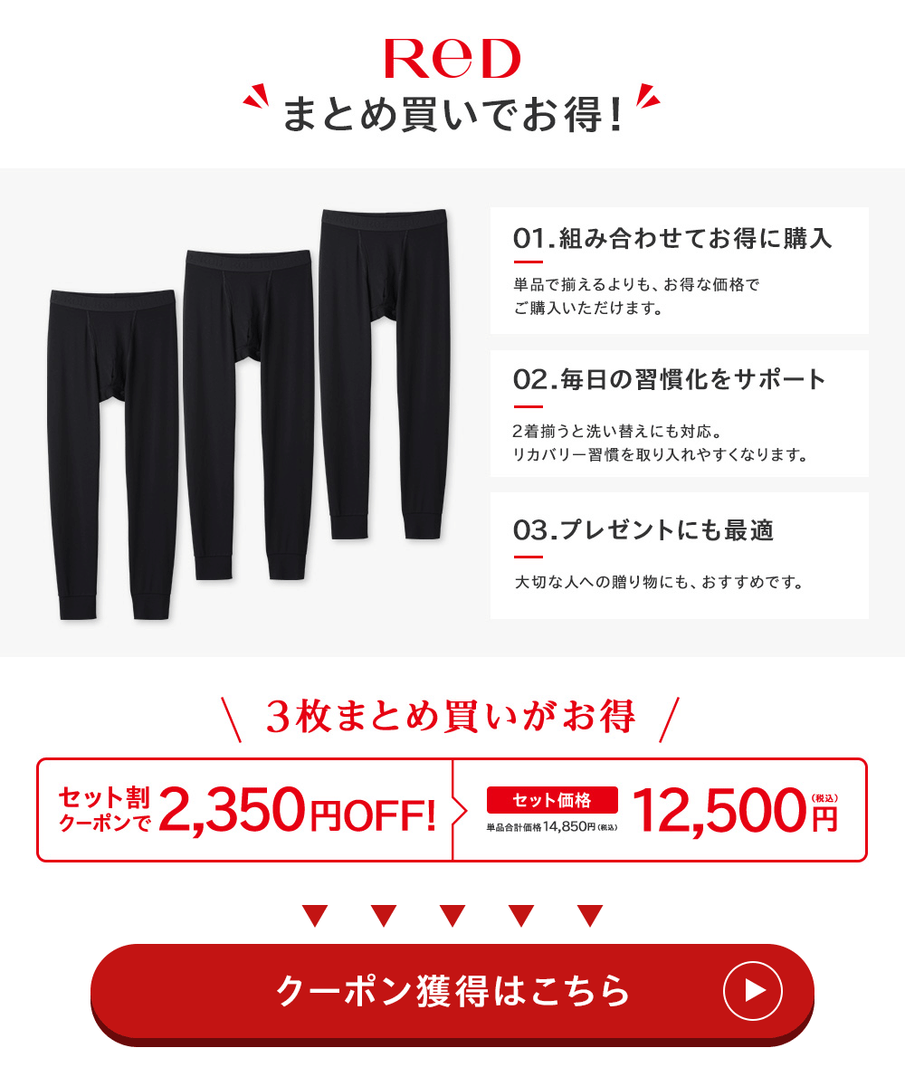 リカバリーウェア ReD レッド公式 タイツ メンズ インナー 男性 疲労回復 血行促進 プレゼント ギフト 一般医療機器 バイタルテック vitaltech 爆買