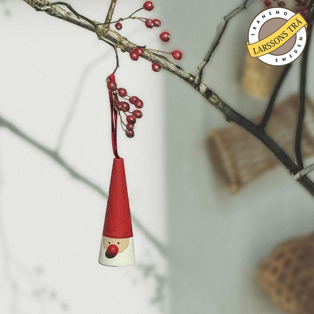 「Larssons Tra」ならではの、木のぬくもりが感じられるかわいらしいサンタクロースのオーナメント。