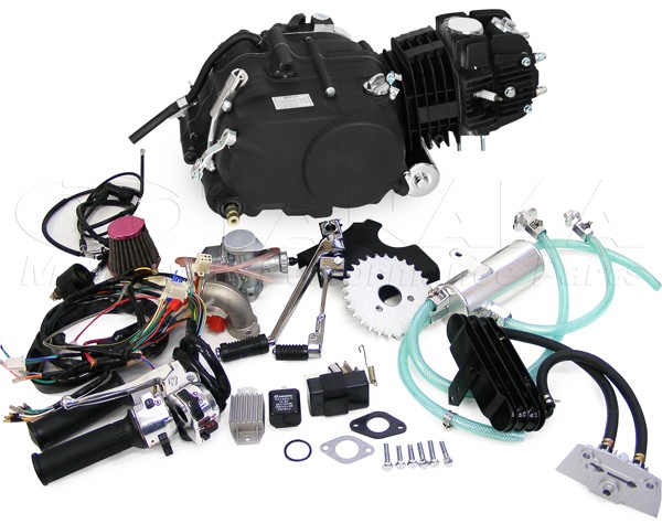 田中商会直営店】セル付/125ccエンジン 12Vオールキット リターン4速 マニュアルクラッチ ステルスブラック