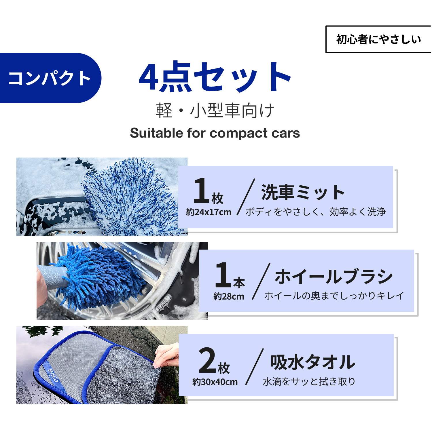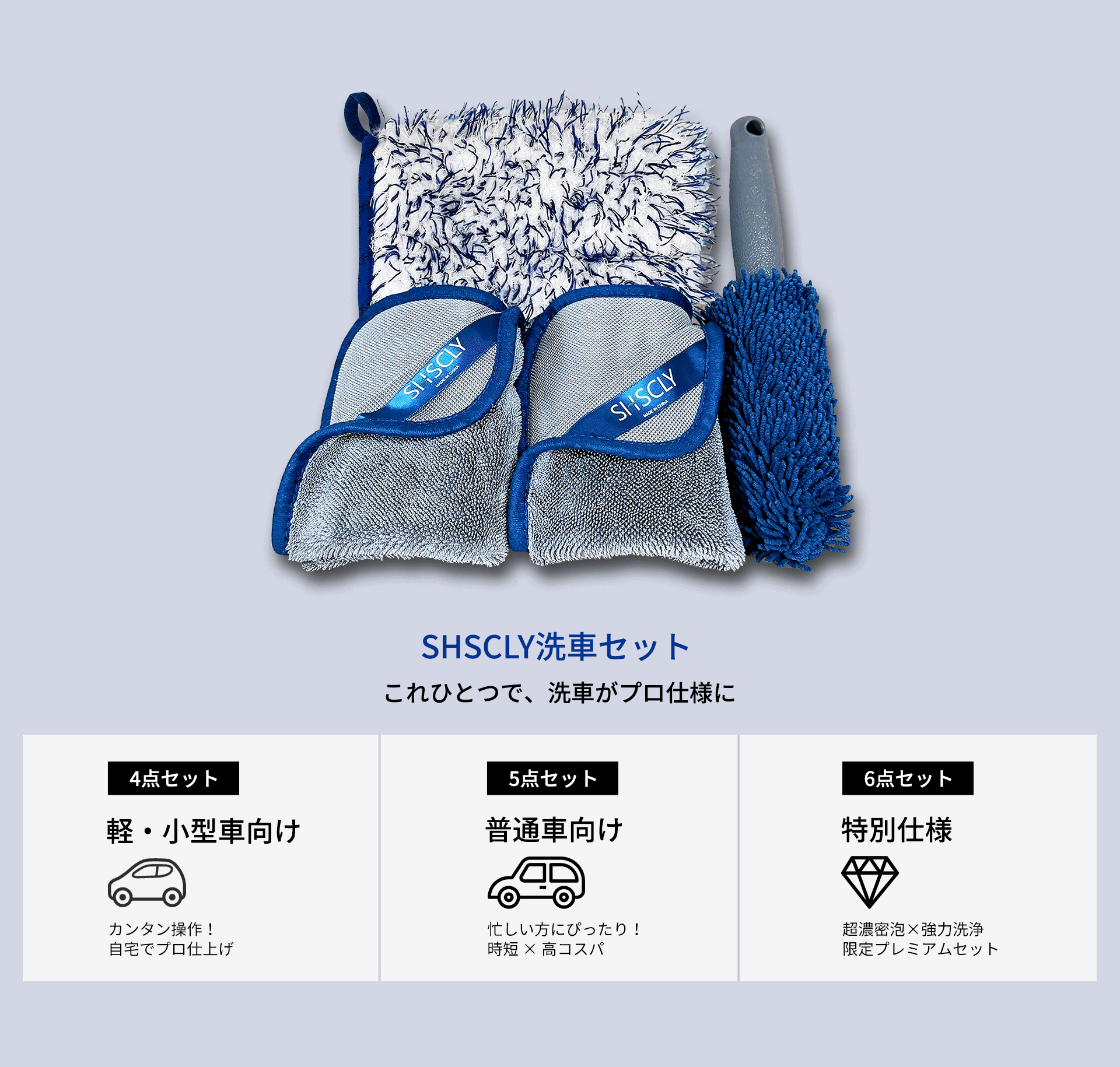 SHSCLY シスクレー 洗車セット 拭き上げ用 マイクロファイバー洗車タオル ホイール用 洗車ブラシ 洗車ミット (洗車タオル2枚 ブラシ1本 ミット1枚 計4点セット)