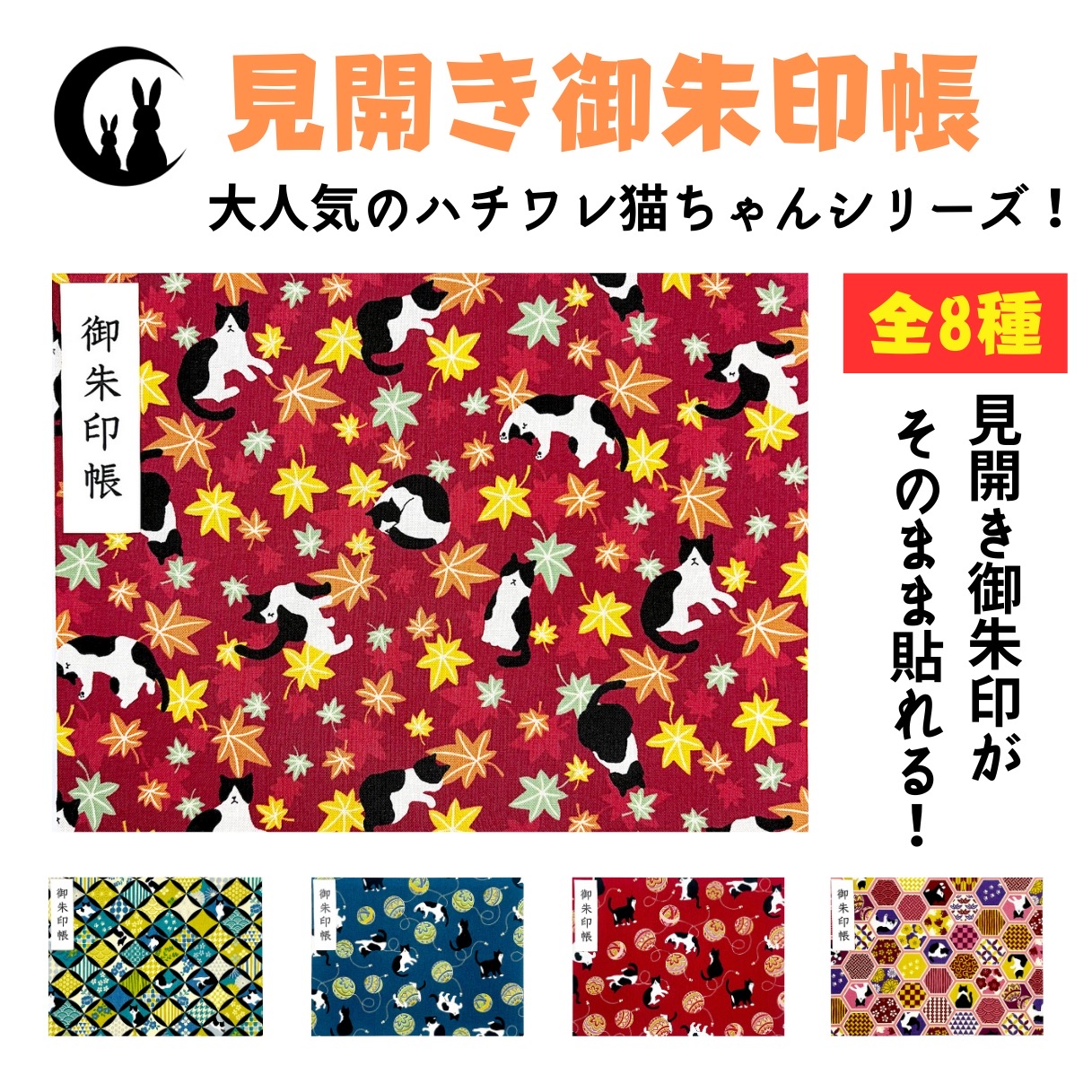 見開き御朱印帳 【ハチワレ猫ちゃん】 御城印帳 蛇腹 書き置き 表題シール付き 送料無料 人気 和柄 可愛い 見開き 蛇腹式 ネコ