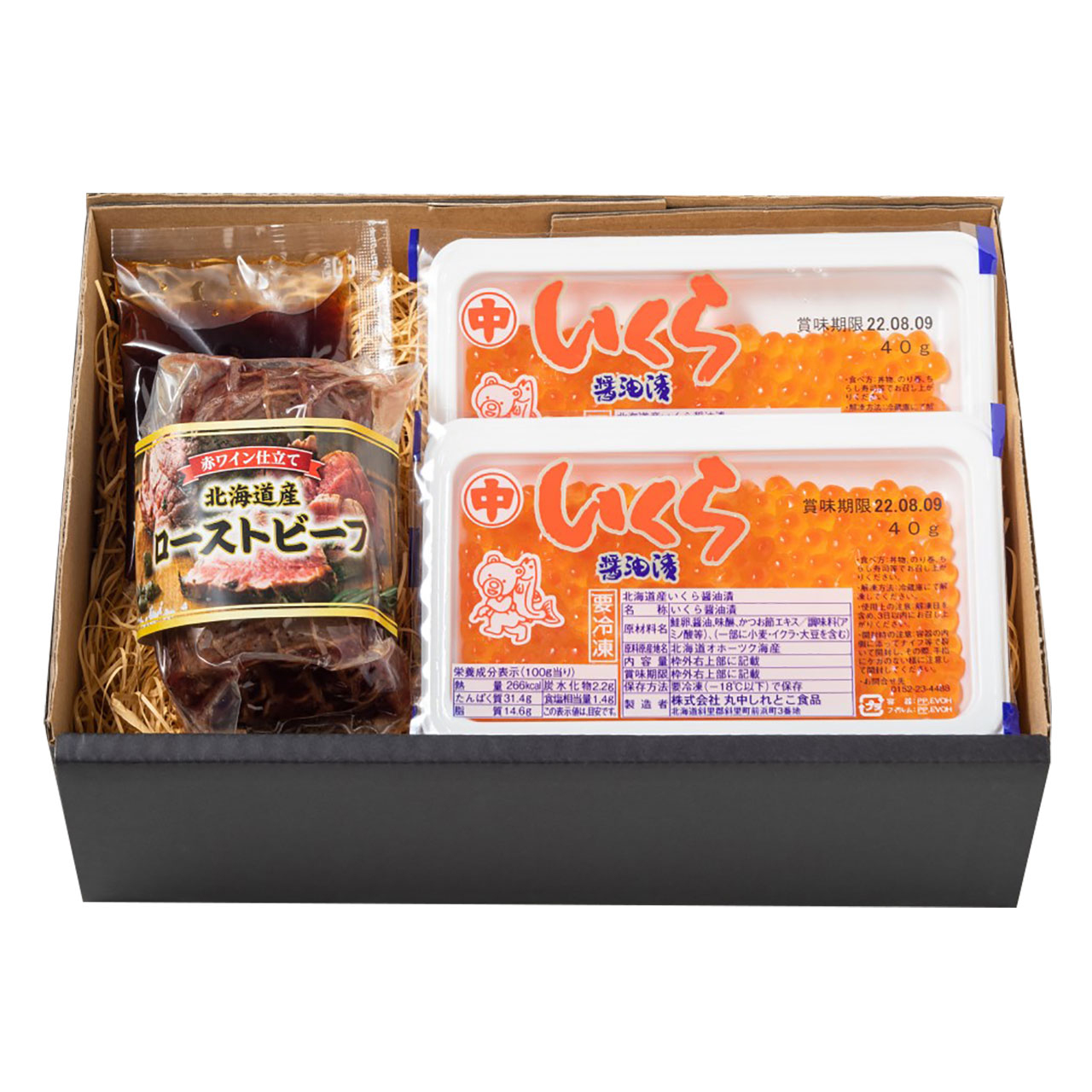 ●セット内容/北海道産牛ローストビーフ(ソース付き)150g×1、北海道産いくら〓油漬け40g×2