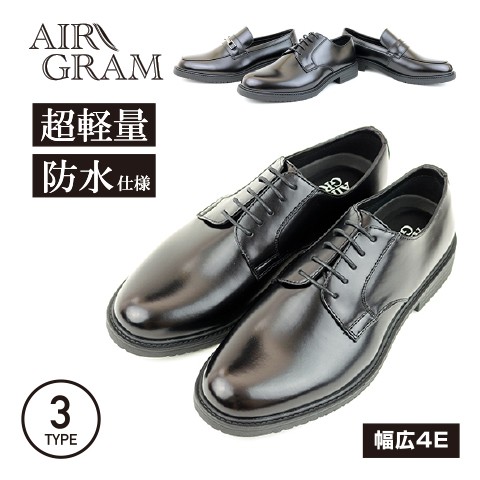 ビジネスシューズ 超軽量 防水仕様 機能性抜群 紳士靴 革靴 メンズ 幅広4E 4時間×4cm 防水 試験合格!AIRGRAM エアグラム