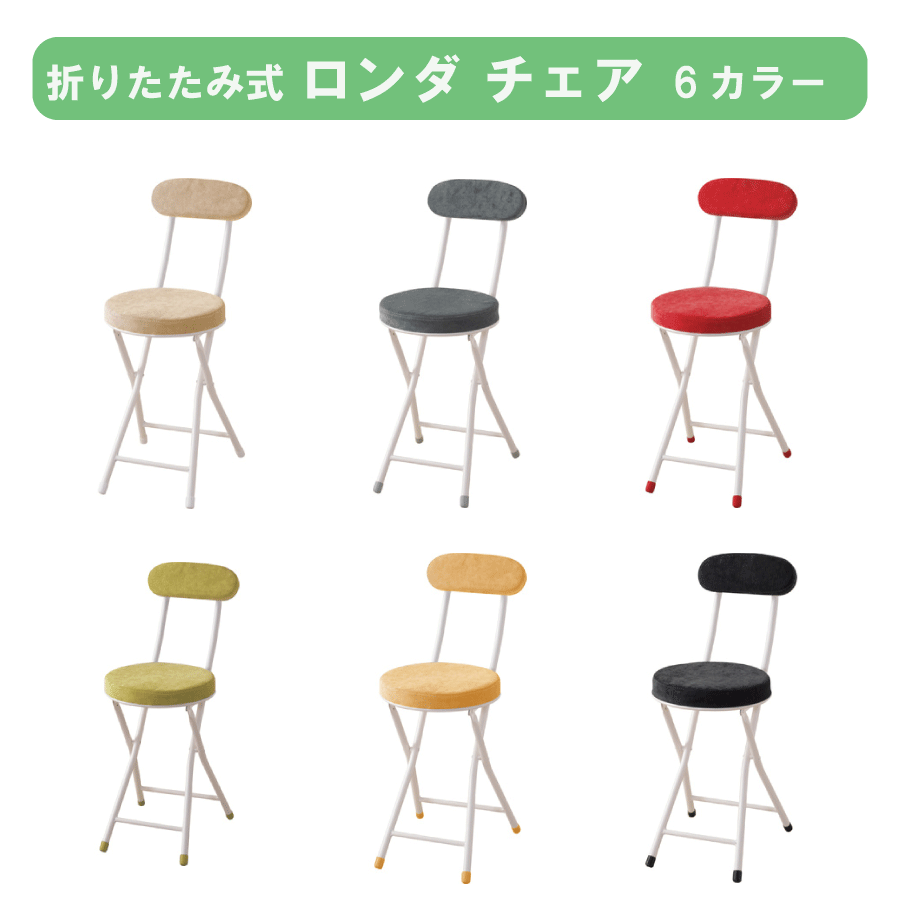 折りたたみ ロンダ チェア ベージュ グレー グリーン レッド ブラック イエロー スツール 隙間収納 椅子 フォールディングチェア 背もたれクッション付