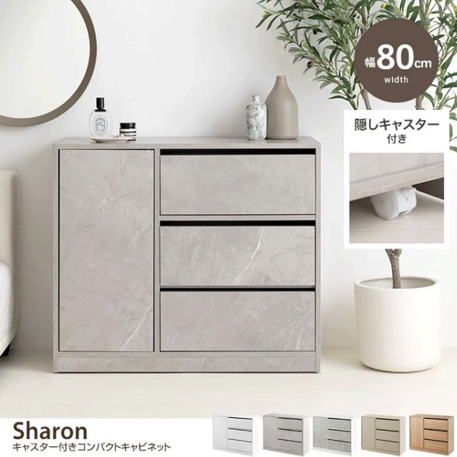 コンパクトサイズながらも収納力抜群な『Sharon(シャロン)』キャスター付きキャビネット。