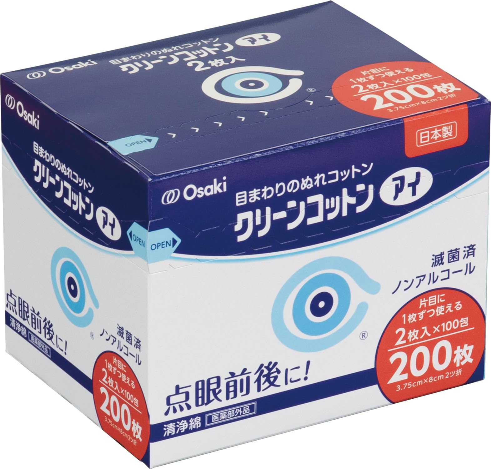 オオサキメディカル 目のまわりのぬれコットン クリーンコットンアイ 200枚入(2枚入×100包)