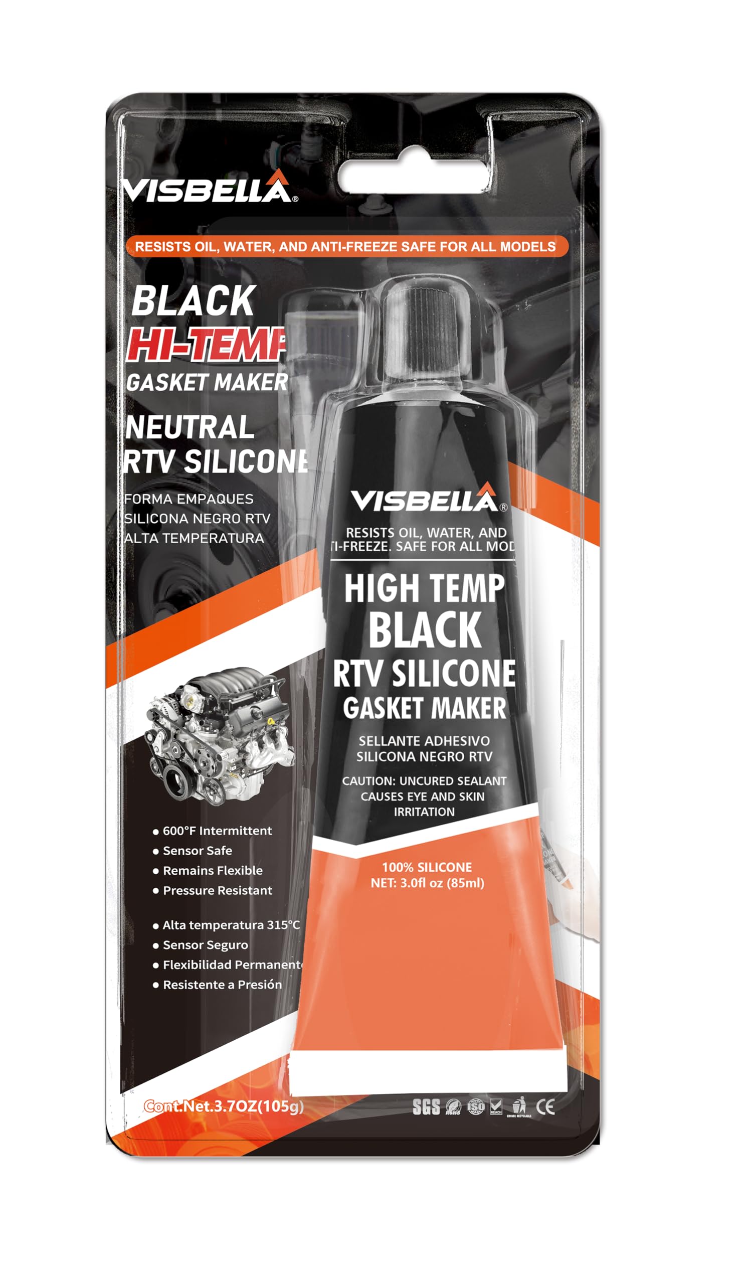 Visbella 105g 液体ガスケット 耐熱 耐油 シリコン系 液状ガスケット バイク マフラー用 オイルサンプなどに適用する(3.7oz) [