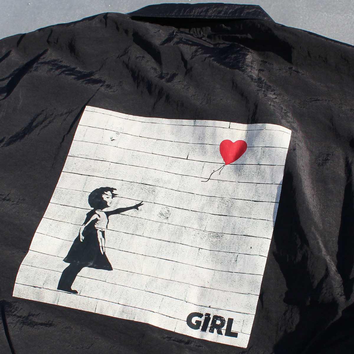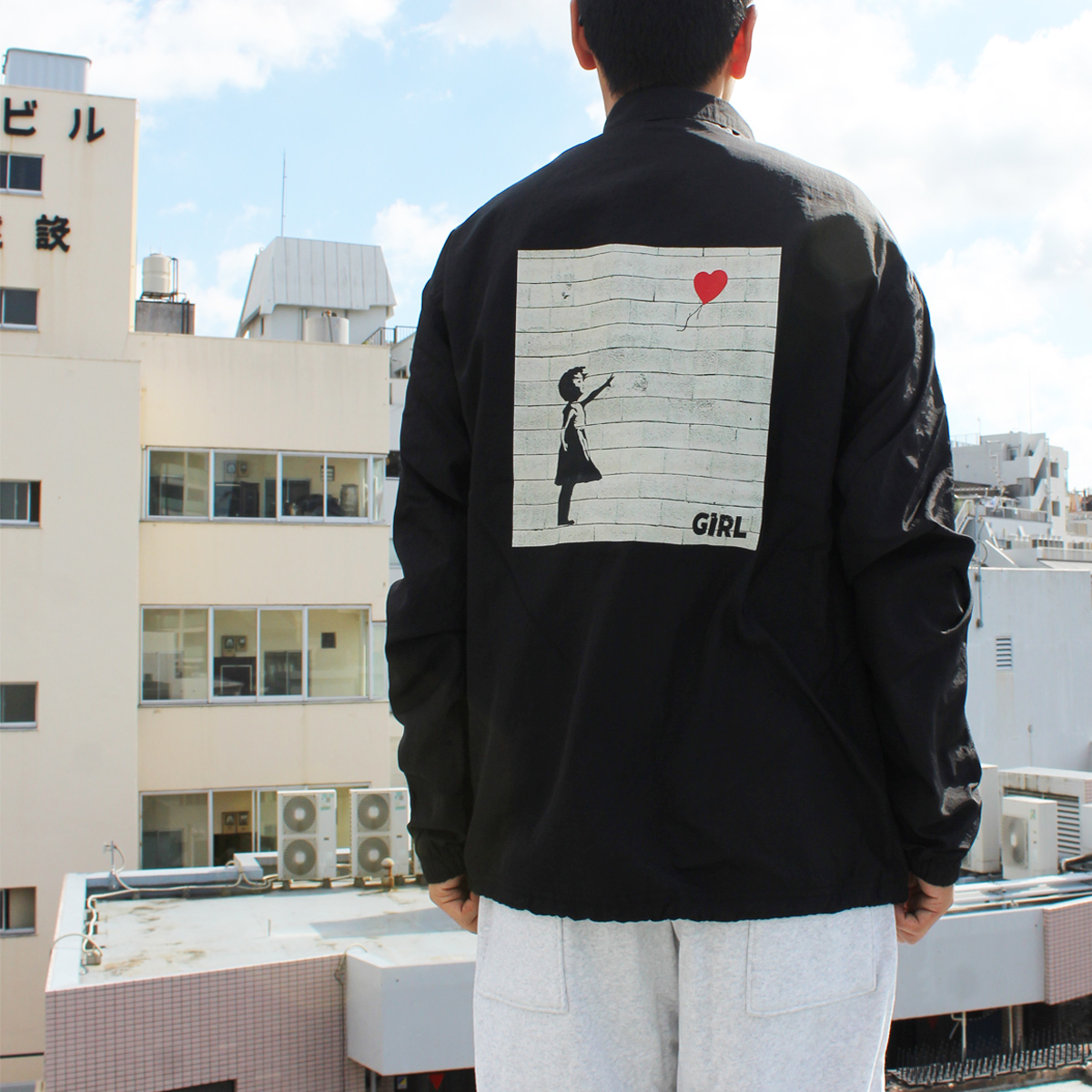 【送料無料】 BRANDALISED 931000 Girl with Balloon 風船と少女 NYLON COACHES JACKET ナイロン コーチジャケット フリースライニング BLACK ブラック L-XL