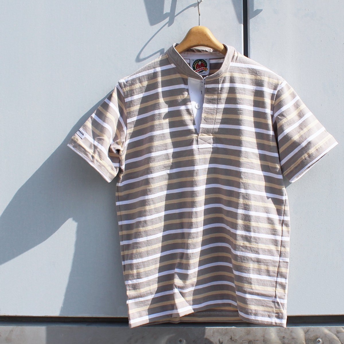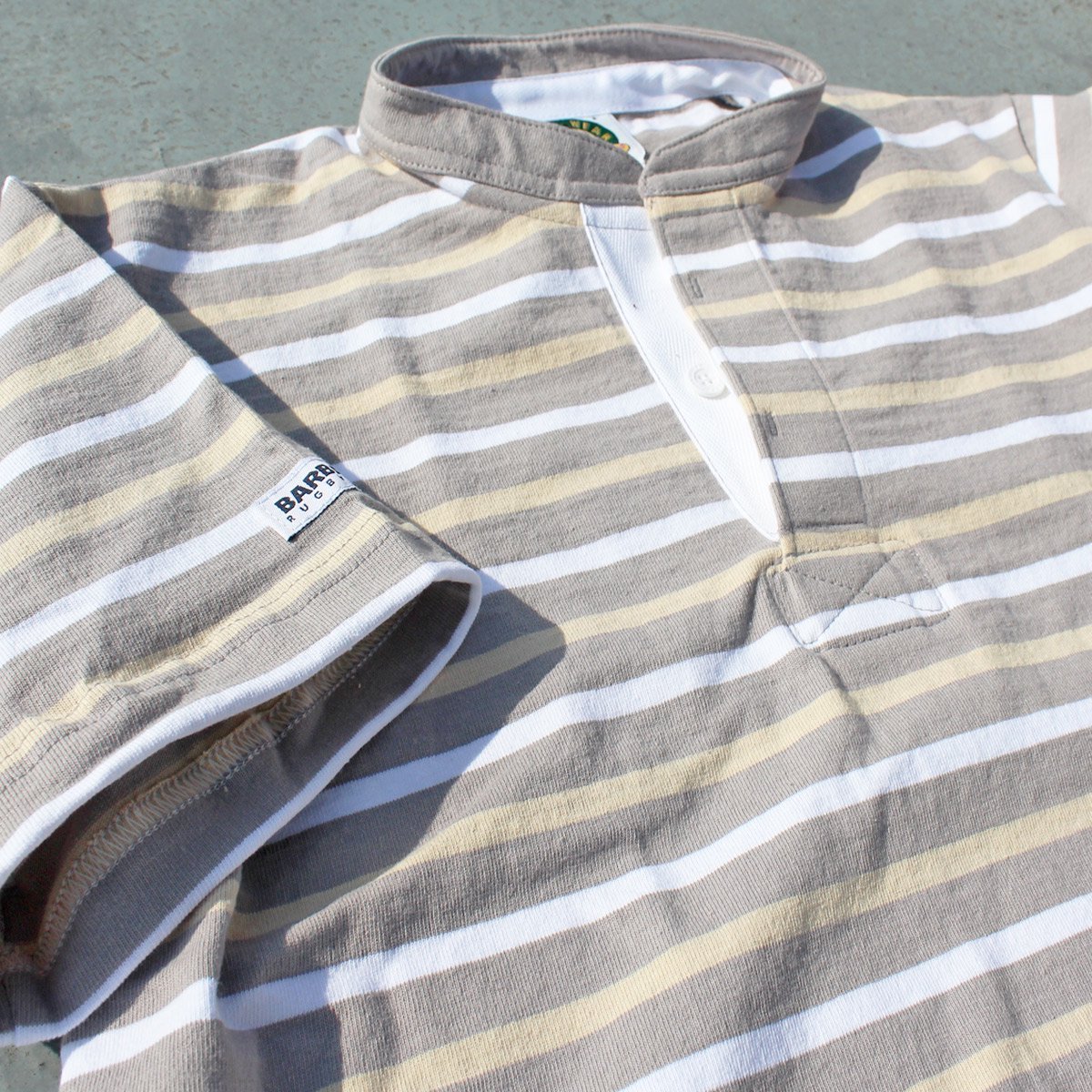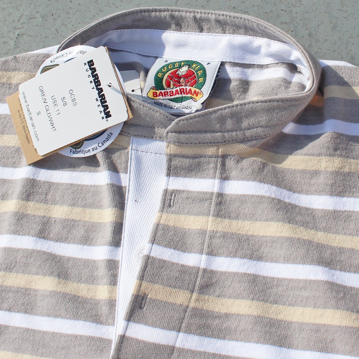 【送料無料】 BARBARIAN USE-11 8oz HENLEY SHORT SLEEVE RUGBY JERSEY ヘンリーネック ラガーシャツ メンズ 半袖 ライトウエイト カナダ製 GRY/VGD/WHT S-XL