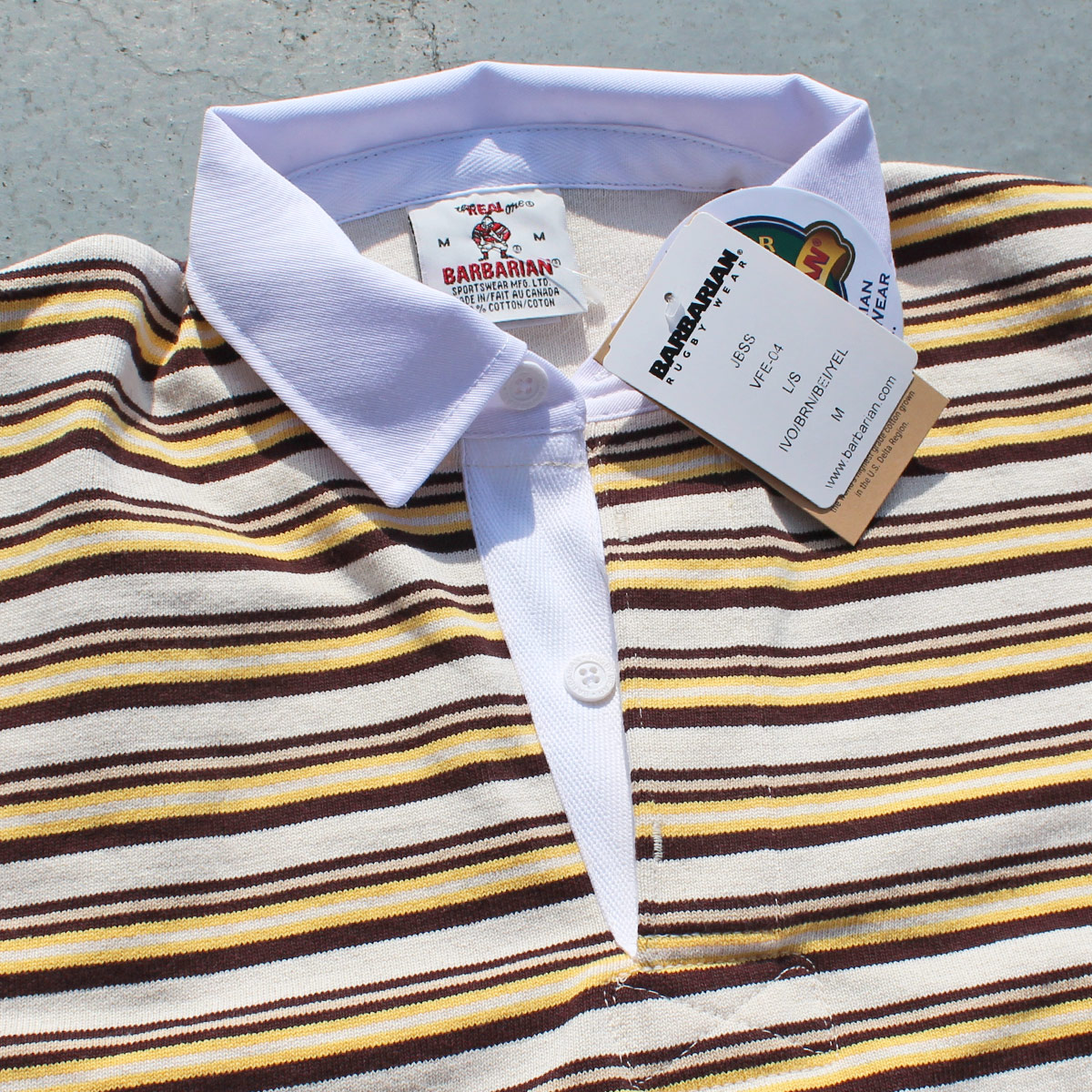 BARBARIAN "NEW JAPAN SIZE SPEC" VFE-04 12oz REGULER LONG SLEEVE RUGBY JERSEY ラガーシャツ 長袖 カナダ製 IVORY/BROWN/BEIGE/YELLOW S-XL 送料無料!