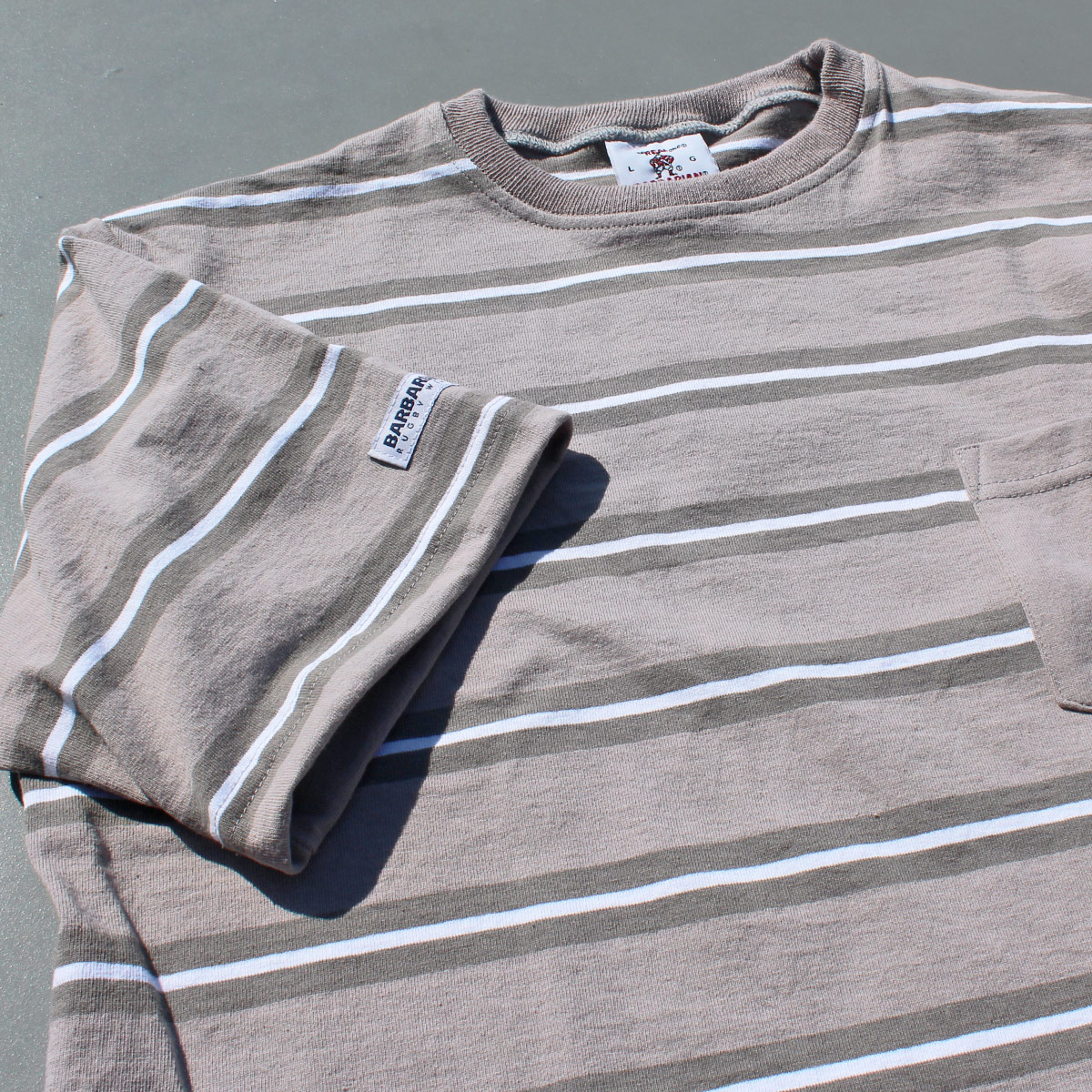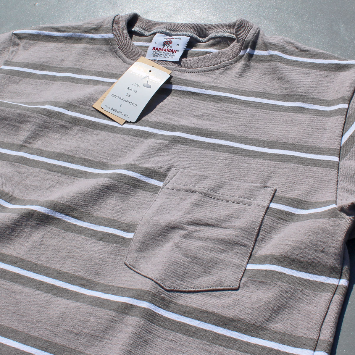 BARBARIAN "NEW JAPAN SIZE SPEC" XSE-16 8oz POCKET CREW SHORT SLEEVE RUGBY JERSEY ラガーシャツ 半袖 カナダ製 GREY/GRAPHITE/WHITE S-XL 送料無料!