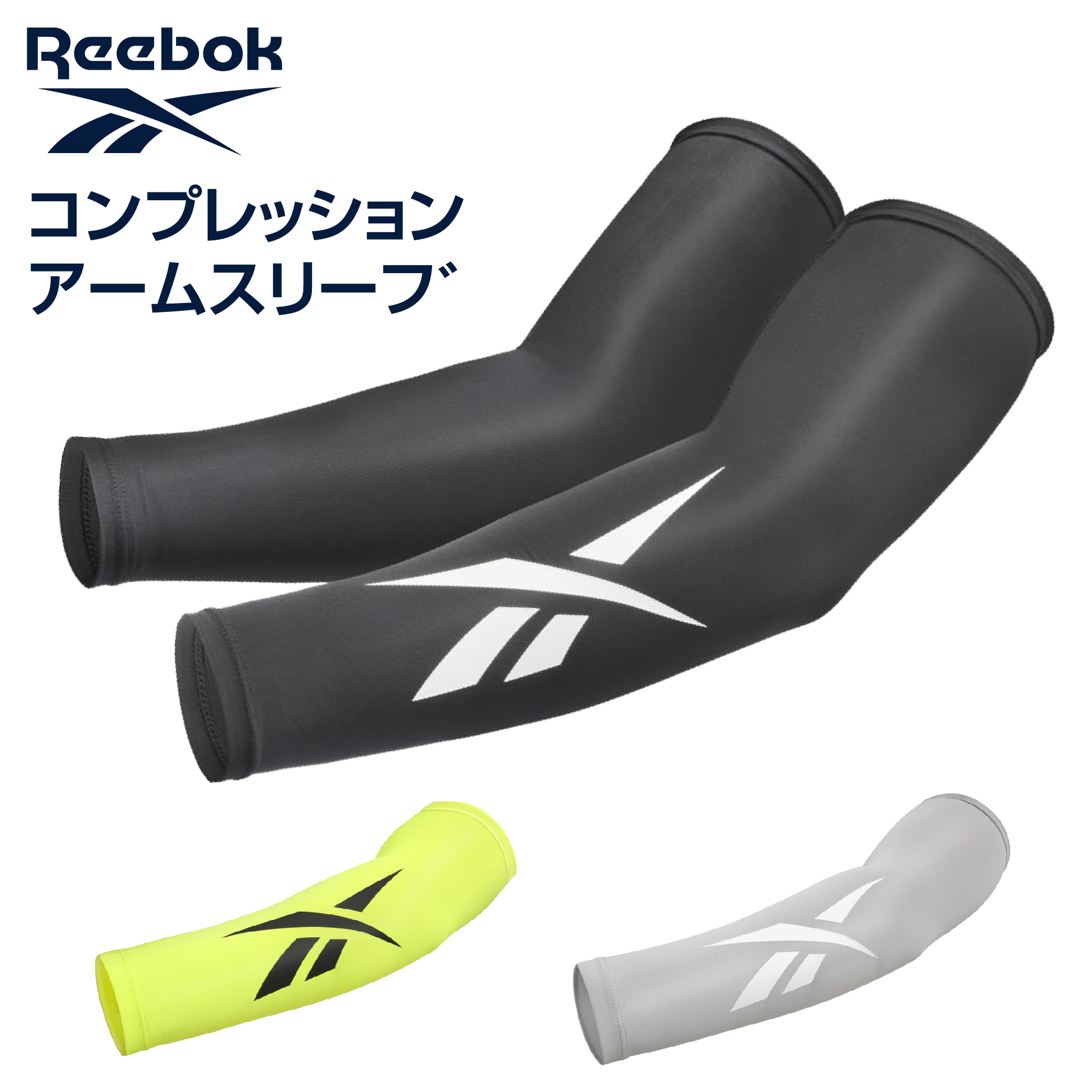 Reebok リーボック コンプレッション アームスリーブ ブラック グレー イエロー アームカバー 腕サポーター 腕カバー アームウォーマー