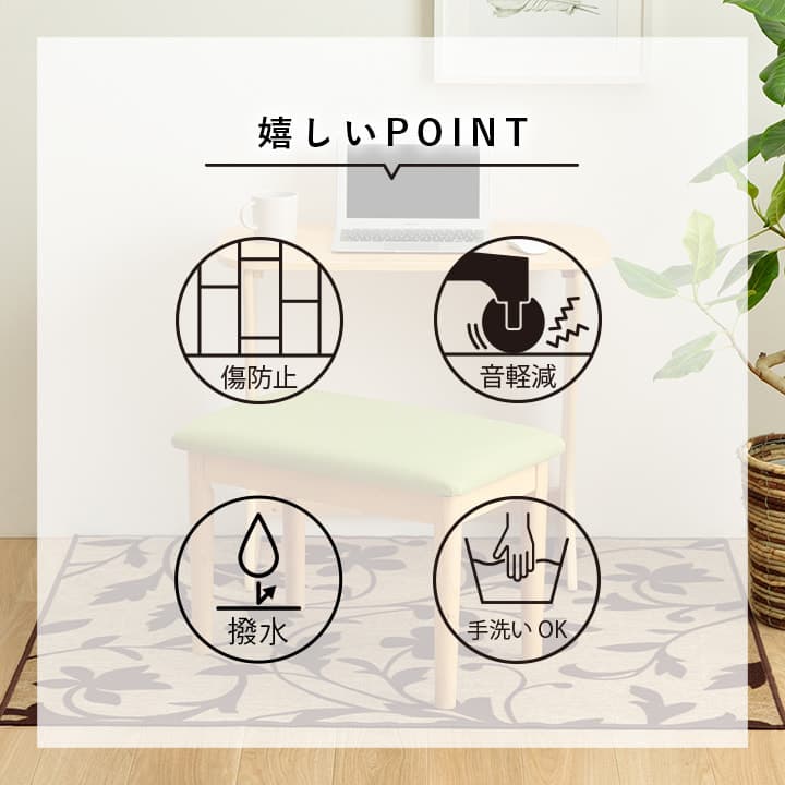 "ボタニカルテイストのおしゃれなカーペット。お子様用のデスクカーペットはもちろん、大人用の書斎やテレワークデスクにもおすすめです。表地に撥水加工を施しているので、水分をこぼしてもサッと拭けてお手入れ簡単。裏面は不織布だから学習机や椅子の移動も安心。床の傷防止に必要なアイテムです。表面はループタイプで毛足が短いので、ゴミもたまりにくくお手入れも簡単。またポリプロピレン糸を使用しているから摩擦に強く、毛玉が出にくいのも特徴です。厚みは5mmと薄いため、椅子の移動やお子様が歩く際もつまずきにくく安心してお使いいただけます。ルームマットとしてキッズルームやベッドサイドに敷いたり、大きいサイズは2人用のダイニングカーペットとしてもお使いいただけます。丸巻きでお届けするため、折りシワの心配もなくキレイに敷くことができます。 |