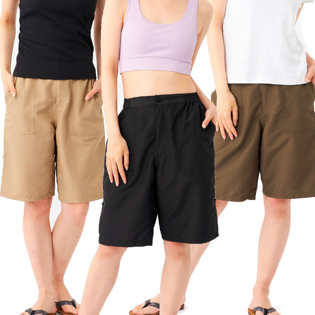 ロールアップ対応!ハーフ丈のカーゴボードショーツ 水着 レディース 単品パンツハーフパンツ ベージュ ブラック カーキ M L LL
