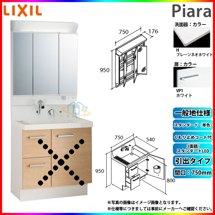 商品名:洗面化粧台セット (Piaraシリーズ750mm幅タイプ)