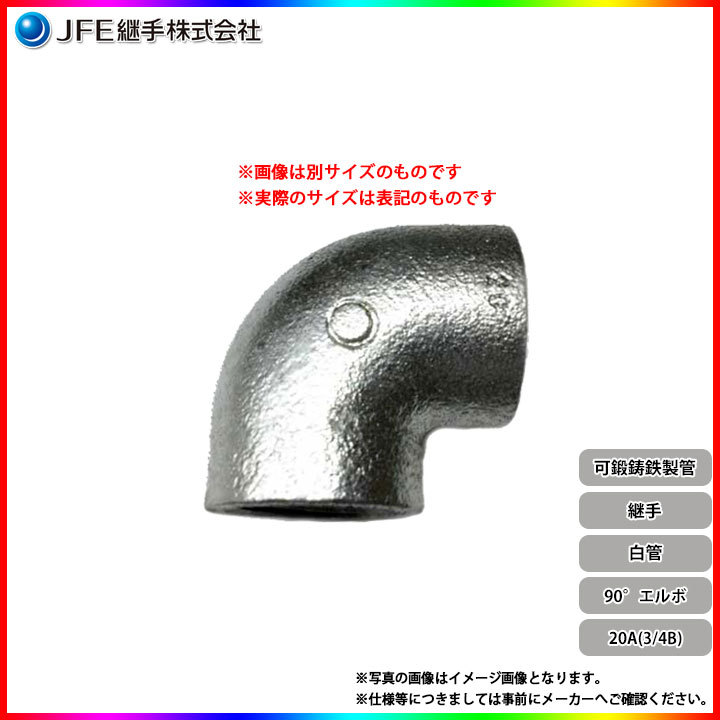 *[L-3/4-32] JFE継手 ねじ込み式管継手 エルボ 90° 20A(3/4) 可鍛鋳鉄製管 品番:L 白管◆[1〜3営業日出荷]