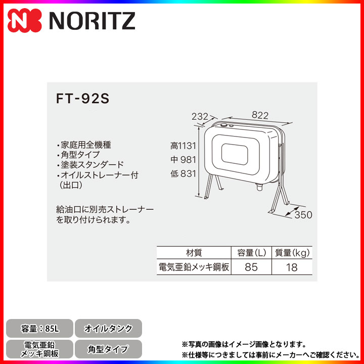 [FT-92S] ノーリツ オイルタンク 角型タイプ 家庭用全機種 85L 電気亜鉛メッキ鋼板 0500672