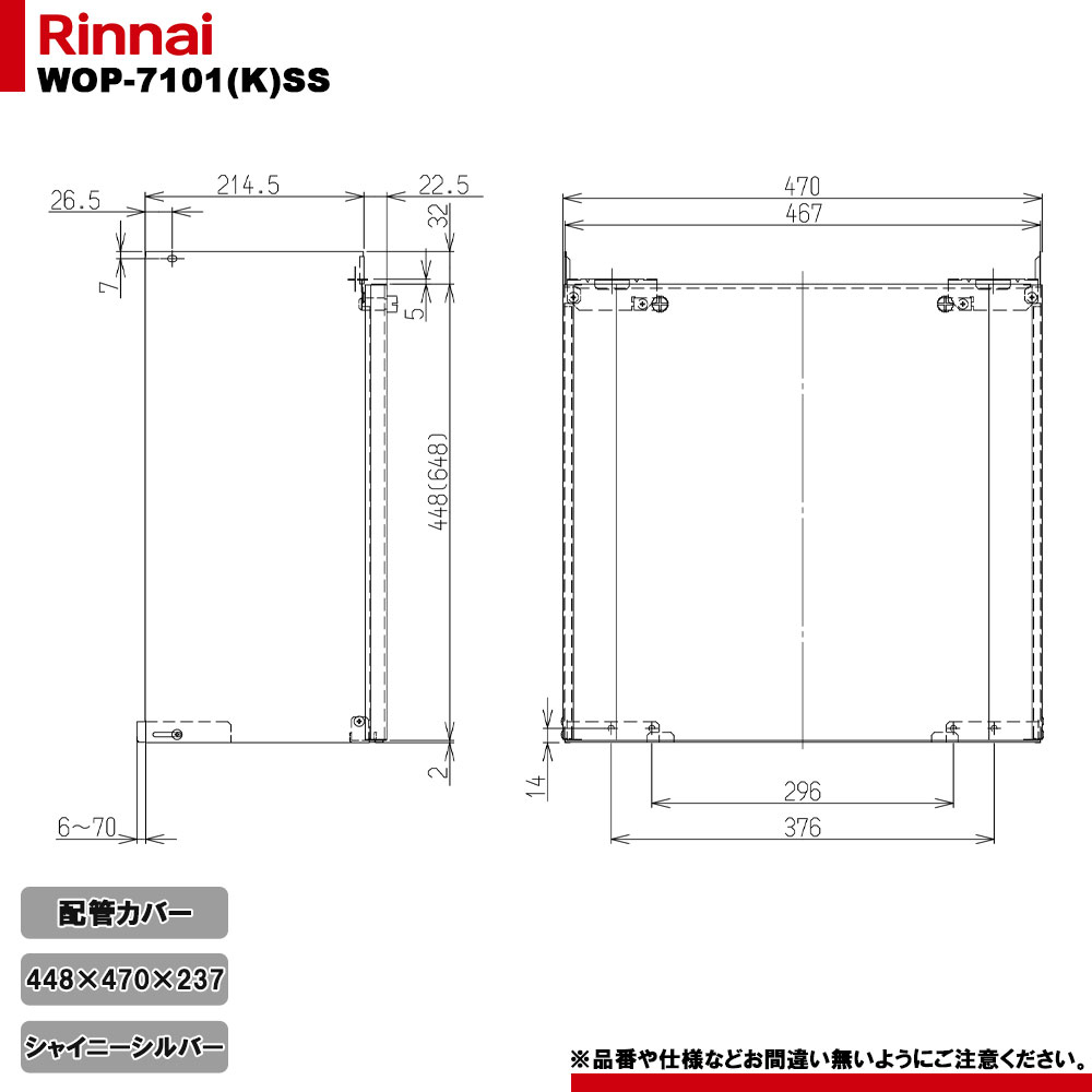 [WOP-7101(K)SS] リンナイ 給湯器部材 配管カバー 450 シャイニーシルバー