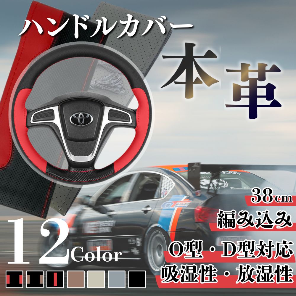 ハンドルカバー 編み込み ステアリングカバー 本革 車 d型 薄手 Mサイズ 38センチ
