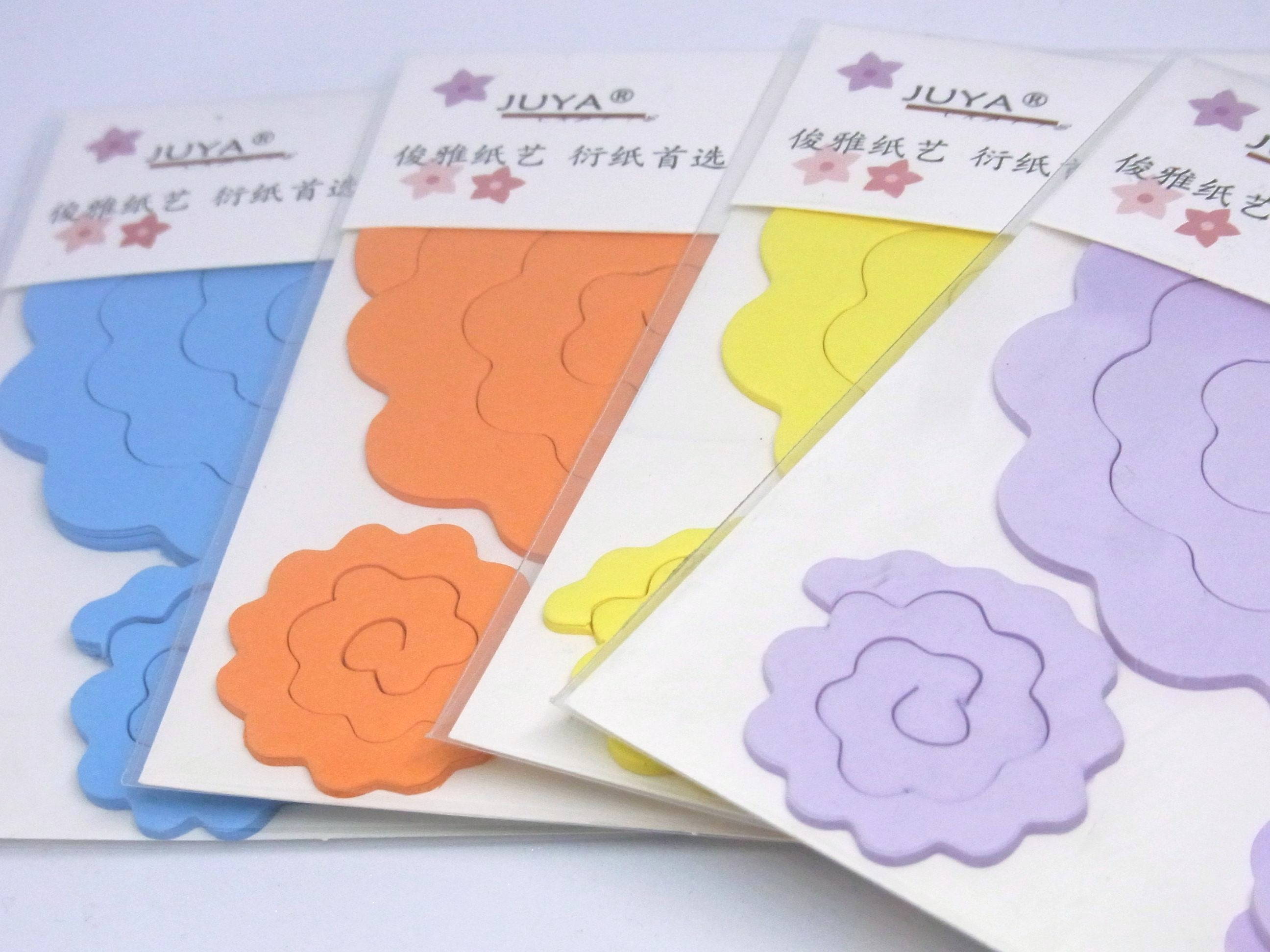 1パックに大、中、小、3サイズが入った、フラワー加工されたクイリングペーパーです。