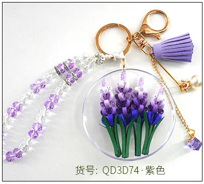 接着剤が完全に乾燥して固定された後、4つのラベンダーを7cmの扁円形の透明カバーに入れ、位置を調整します。写真に示すように、各ラベンダーの底に接着剤を塗布し、透明なカバーに固定します。カバー(中央に1〜2本の棒を固定することもできます)、透明なカバーの端を接着剤でシールします(外観に影響を与える接着剤の跡が多すぎるのを避けるために、6〜8個のスポットを見つけて接着剤を塗布します。)最後に同色のタッセルキーホルダーをつけて、ピンククリスタルペンダント、ロマンチックなピンクラベンダーペンダント完成です〜
