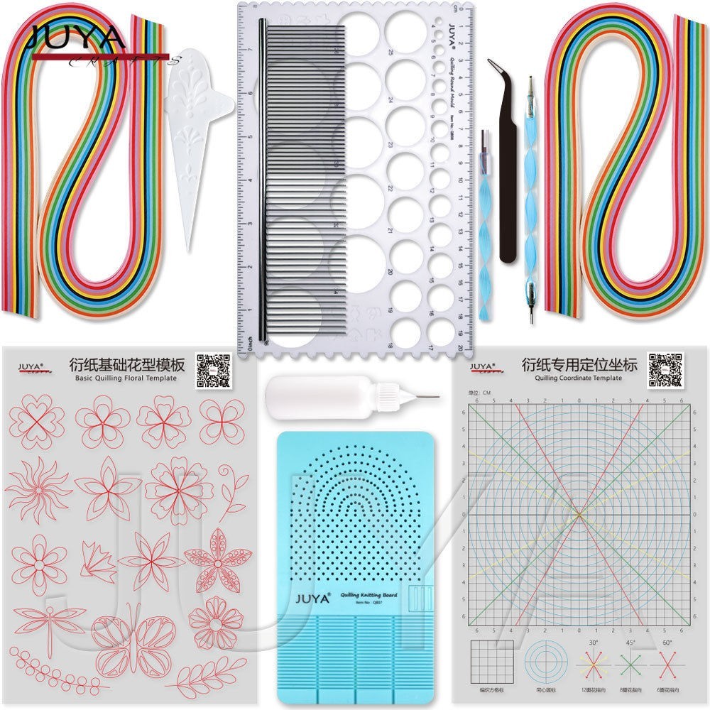 《商品内容》クイリングペーパー2パック(3mm×1、5mm×1)54cm、120本入り(12色×10)1.クイリングスロットバー (エンボス&スロットの2ヘッド)2.クイリングスロットバー ワイドタイプ (複数枚を一緒に巻くことができます)3.ピンセット4.クイリングペグボード クイリング用編み板:サイズ:157 x 92 mm 30本のピンと2本の溝付きピンが含まれています。5.クイリングラウンドボード サイズ:210 x 140 x 2 mm 31サイズの円形、エンボス加工のテンプレートが14個あります。6.クイリング3Dメーカー 4つの異なる形状で、異なるサイズの3Dコイルを作ることができます。 エンボス加工用の8つのテンプレート形がついています。7.クイリングテンプレート3枚 サイズ:210 x 150 mm。基本的な花テンプレートx 1、 対称的な形のためのテンプレートx 1、3.無地のテンプレートx 18.グル―ボトル(シリカキャップ)のりは入っていません。9.クイリングコーム:2サイズタイプ