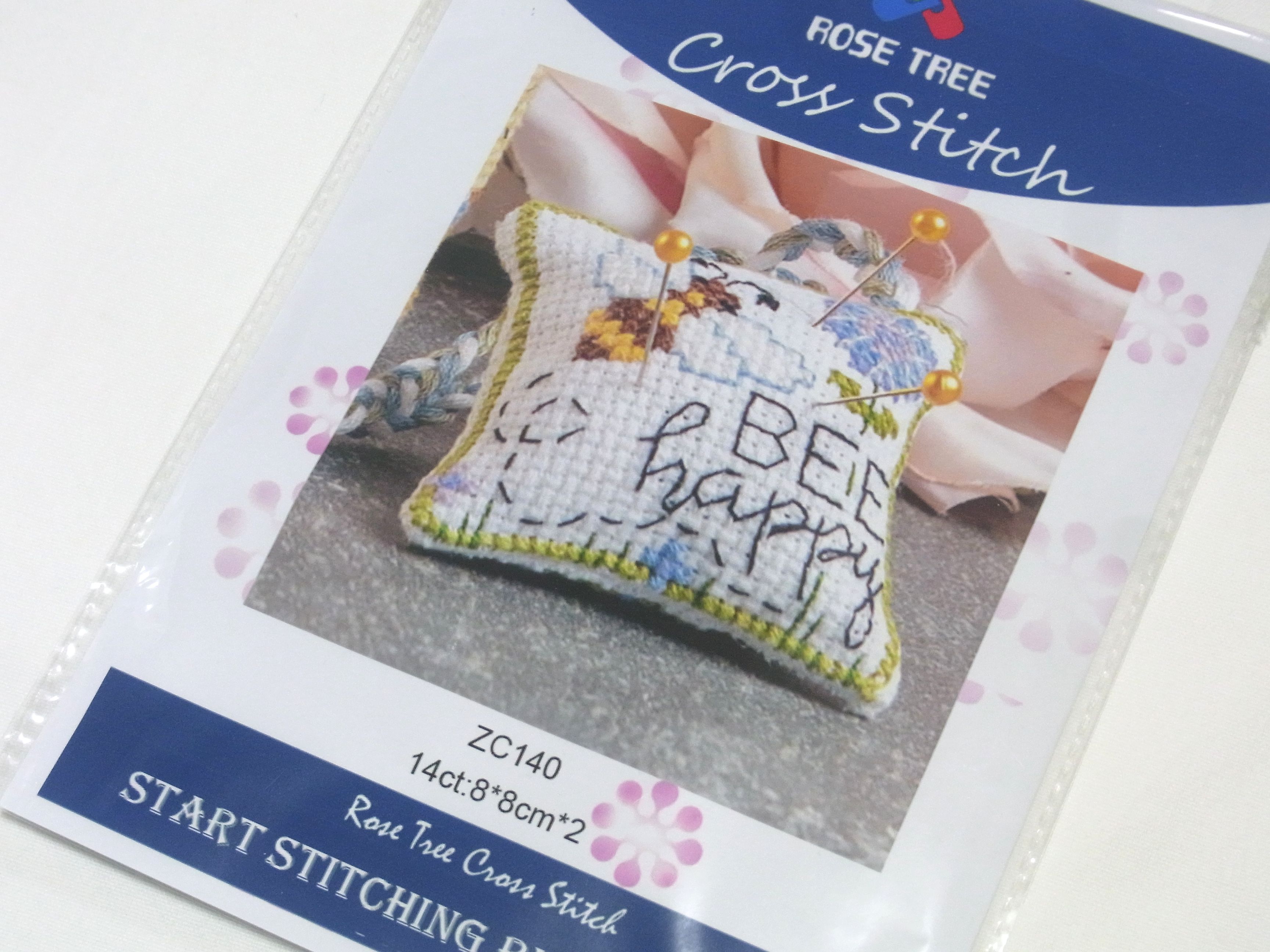 クロスステッチキット ピンクッション みつばち bee happy 14CT 8x8cm
