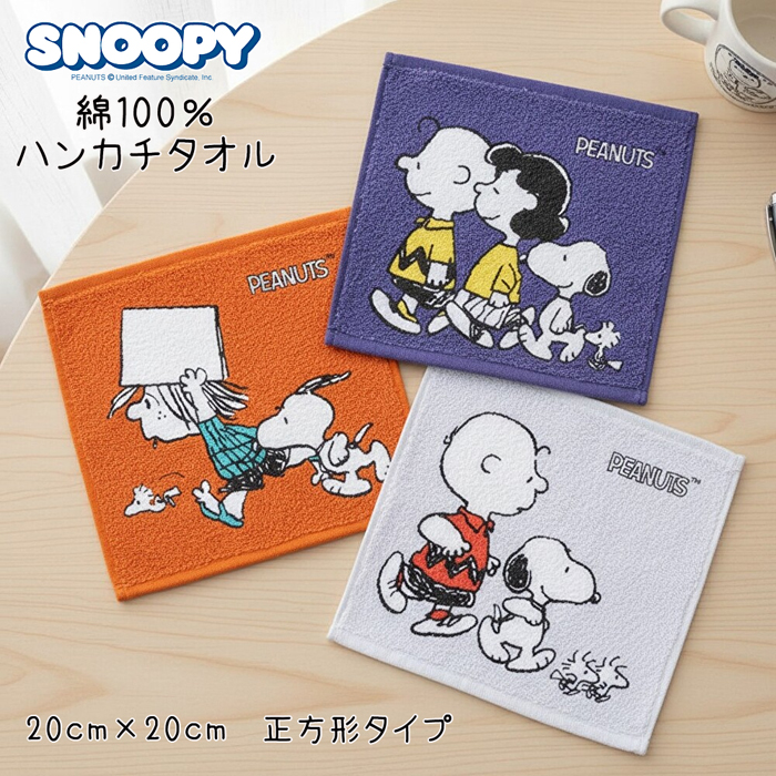 スヌーピー タオルハンカチ 正方形 20cm ハンカチ ハンドタオル ミニハンカチ コンパクト かわいい 保育園 幼稚園 学校 入園 入学 プレゼント snoopy PEANUTS