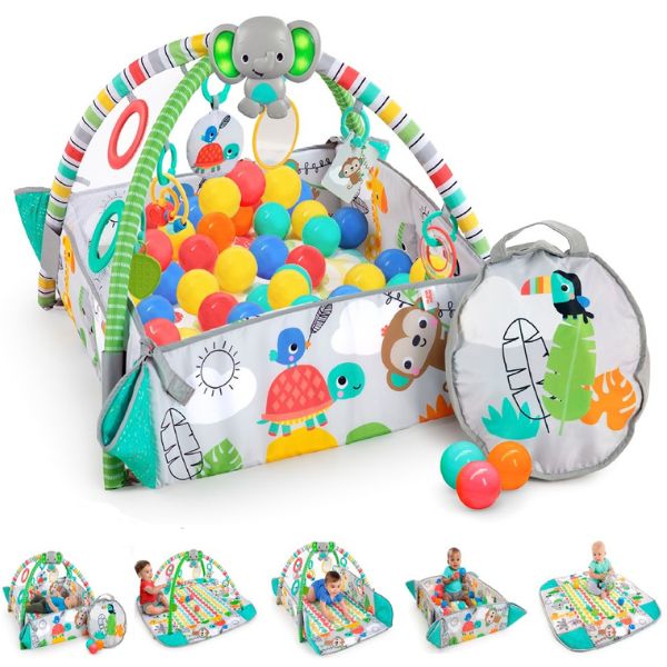 | 商品紹介 | 赤ちゃんの成長に合わせて 形を変えて使えるプレイジム! *ボールが40個 付いているのでボールプールとしてもお使いいただけます。 *ミュージカルトイは20 分以上の自動演奏モードを搭載し、ぞうの耳の部分が光ります。 *腹ばい時に便利なまくら/ クッション付き *ジムリンクでおもちゃをつなげて楽しめます。 単3電池×3 ※別売 セット内容:プレイマット、トイバー、ぞうのミュージカルトイ、丸型おもちゃ、葉っぱ型おもちゃ、フラッシュカード×3 、インタラクティブおもちゃ、かがみ、まくら / クッション 、 ボール用バッグ、ボール×40、ラトル、ジムリンク×6 ※ 組み立てサイズ トイバー付きで広げた際:101cm x 113cm x 53cm 箱型:60cm x 64cm x 53cm |