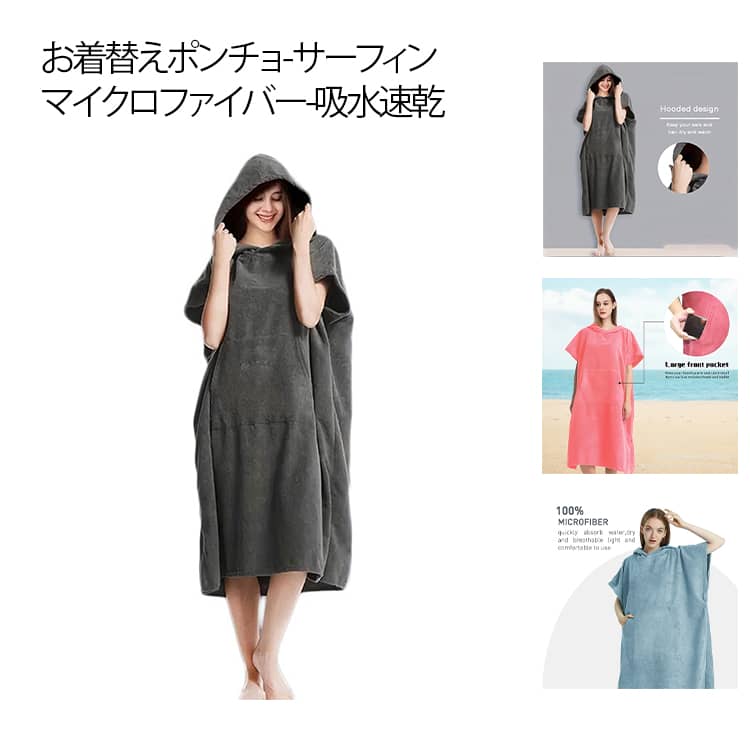 | 【とても便利なお着替えポンチョが登場!】 このポンチョが1枚あれば、人目を気にせず着替えることができます。 マリンスポーツの時はもちろん、ワンオペママのお風呂上りのバスローブとしても大活躍! 【オールシーズンお役立ち】 夏は日焼け防止やエアコン対策として、冬はウェットスーツや服の上から羽織って防寒対策に!またお風呂上りのワンオペママのバスローブや、サウナポンチョとしても使えてオールシーズンお役立ち間違いなしです。 【機能性抜群】 ゆったり羽織れるサイズですが、胸元が気にならない作りになっています。 前面には、大きめのポケットがついているので、スマートフォンや鍵など入れておけます。 【超軽量マイクロファイバー】 新開発のマイクロファイバーを採用しており、吸水性、速乾性にたいへん優れています。 | |