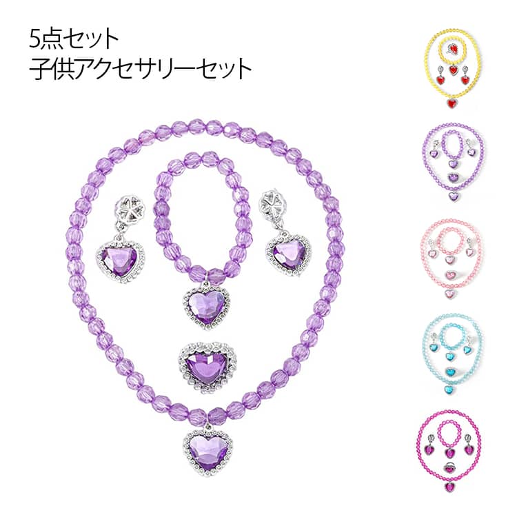 | プリンセス気分のキラキラビーズのネックレス ブレスレット5点セット ネックレスとブレスレット、指輪、イヤリングがセットになってます。 発表会や結婚式などドレスコーデにとってもかわいく使えます | |