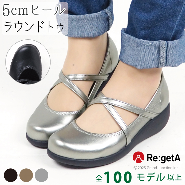 人気健康シューズ『Re:getA』リゲッタより不動の人気を誇るクロスベルトパンプスの紹介です!丸っこいデザインで見た目が可愛いパンプスですが、実はインソールに特徴のある健康シューズ(コンフォートシューズ)なんです!インパクトのある「5cmウェッジソール」仕様のパンプスです。お洒落靴としても通勤用としても様々なシーンで活躍します!