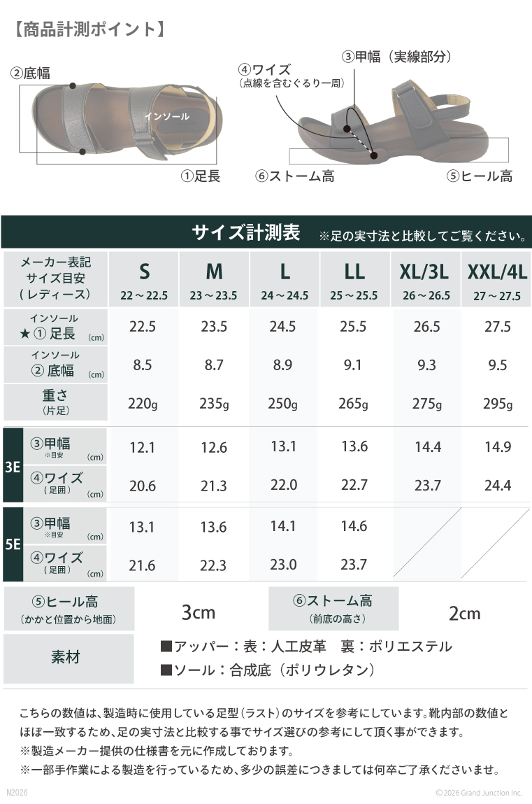| サイズ展開 | レディース S (22.0-22.5cm) M (23.0-23.5cm) L (24.0-24.5cm) LL(25.0-25.5cm) XL (26.0-26.5cm) XXL(27.0-27.5cm) ワイズ:3E相当、5E相当を展開(一部サイズのみ) ※上記 ( ) 内はメーカーが設定する基準サイズとなります。足の形、好みによって異なりますので参考程度にご確認ください。 ※サイズについての詳しい情報は当ページ内「サイズについて」をご確認ください。 |