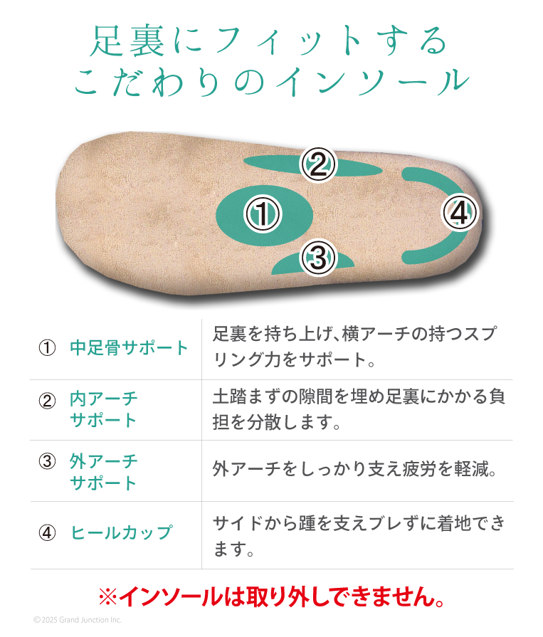 | 素材 | アッパー:合成皮革・ポリエステル インソール:EVA・ポリエステル・ポリウレタン 底:合成皮革 |
