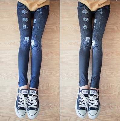 大きな 破れ(やぶれ) 模様 プリント ストレッチ 素材 デニム レギンス 美脚 スリムレギンス/レギパン/冬 期間限定 冷感 ハロウィン クリスマス