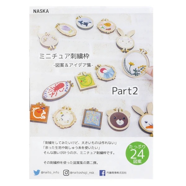 NASKAミニチュア刺繍枠の使い方から、刺繍の基本のステッチなど、情報盛りだくさんの1冊です。 大小さまざまなサイズの枠を使用した作品を30点掲載。 初心者向けの簡単なものから、中〜上級者向けの複雑な作品まで、幅広い作品を掲載しています。 どんな図案を刺したらいいの?とお困りの方は図案集を参考にしてみてはいかがでしょうか。 A6 12ページ 24点掲載